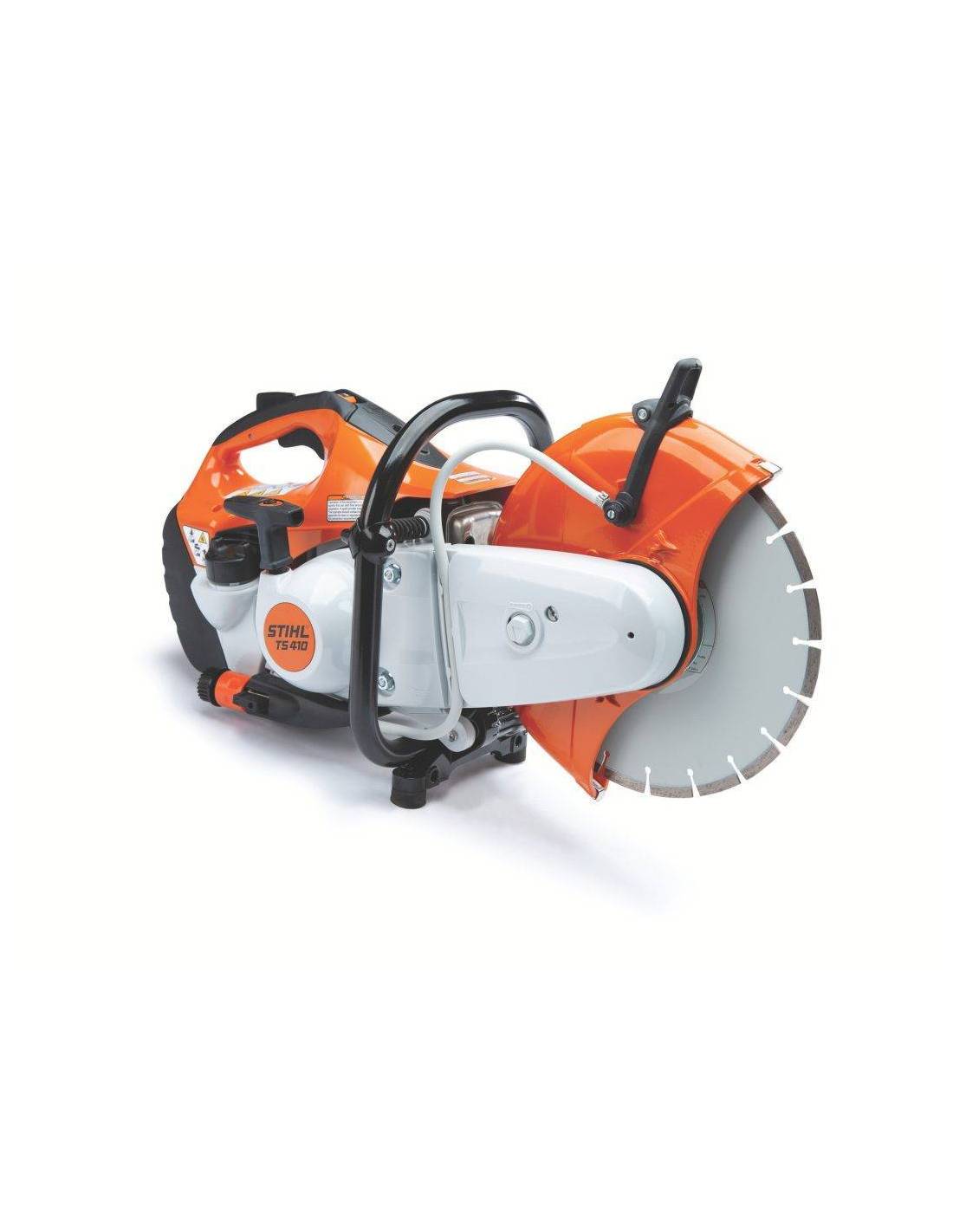 La Stihl TS 410 cuenta con un motor de gasolina de 2 tiempos con sistema de filtrado de larga duración y bajo nivel de vibraciones. Su diseño compacto y disco de 300 mm la hacen ideal para cortes en hormigón, asfalto y acero de obra.