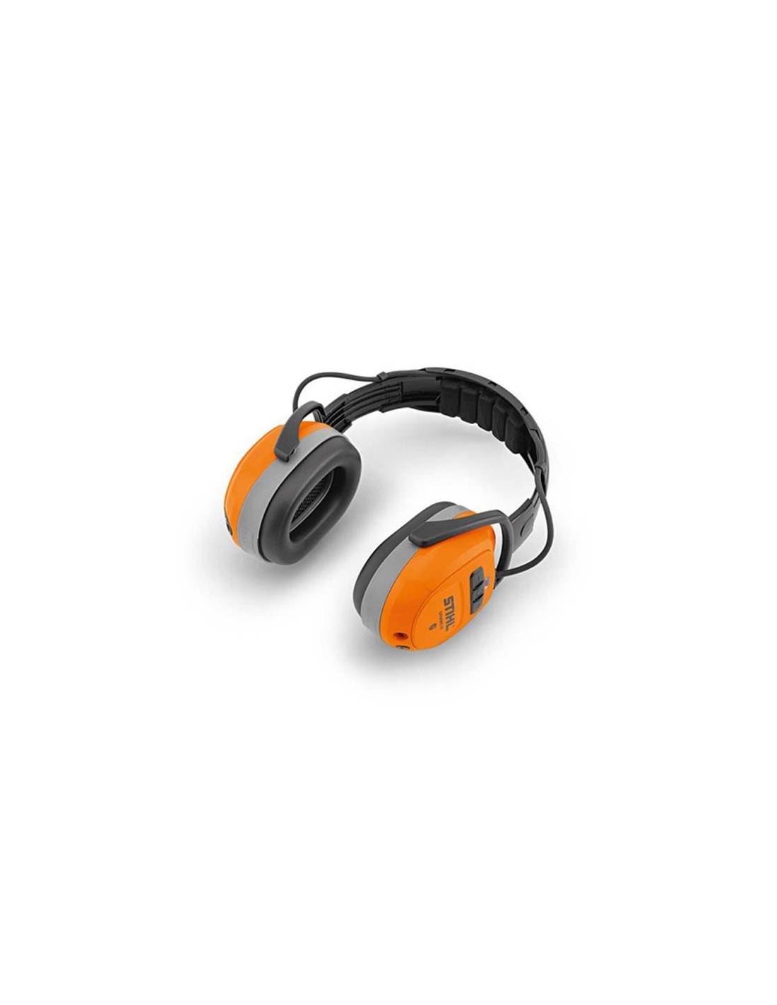 Protector auditivo STIHL Dynamic Sound, con diadema de metal transpirable, almohadillas suaves y conexión Bluetooth® 4.0. Entrada auxiliar independiente y autonomía de batería de hasta 38 horas. Apto para uso con smartphone. Norma EN 352 con SNR 29 hasta 108 dB(A).