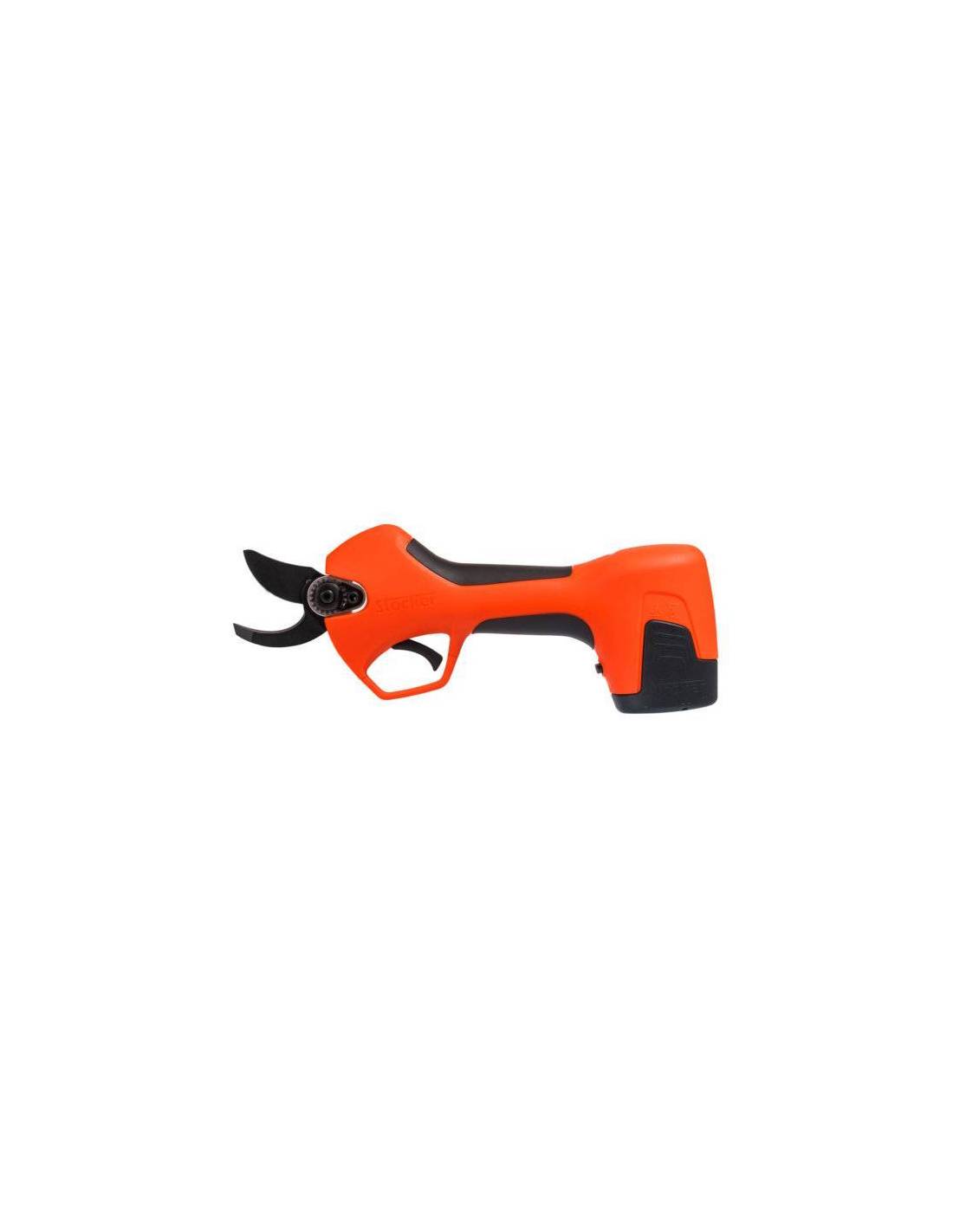 La tijera eléctrica Vulcano E-25 TR Stocker está diseñada para podadores profesionales que buscan potencia, precisión y autonomía. Su motor eficiente y su cuchilla de acero afilado permiten realizar cortes limpios hasta 25 mm, ofreciendo un rendimiento muy superior a las tijeras manuales.