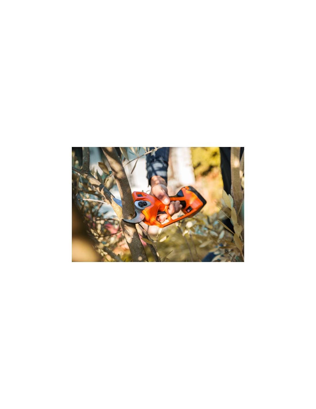 Incluye 2 baterías Li-Ion de 21,6 V y 2,6 Ah, cada una con hasta 3,5 horas de autonomía, más un cargador doble, kit de mantenimiento y maletín rígido. Su apertura regulable y sus modos de corte (progresivo y automático) permiten adaptarse a ramas de distinto grosor hasta 40 mm.