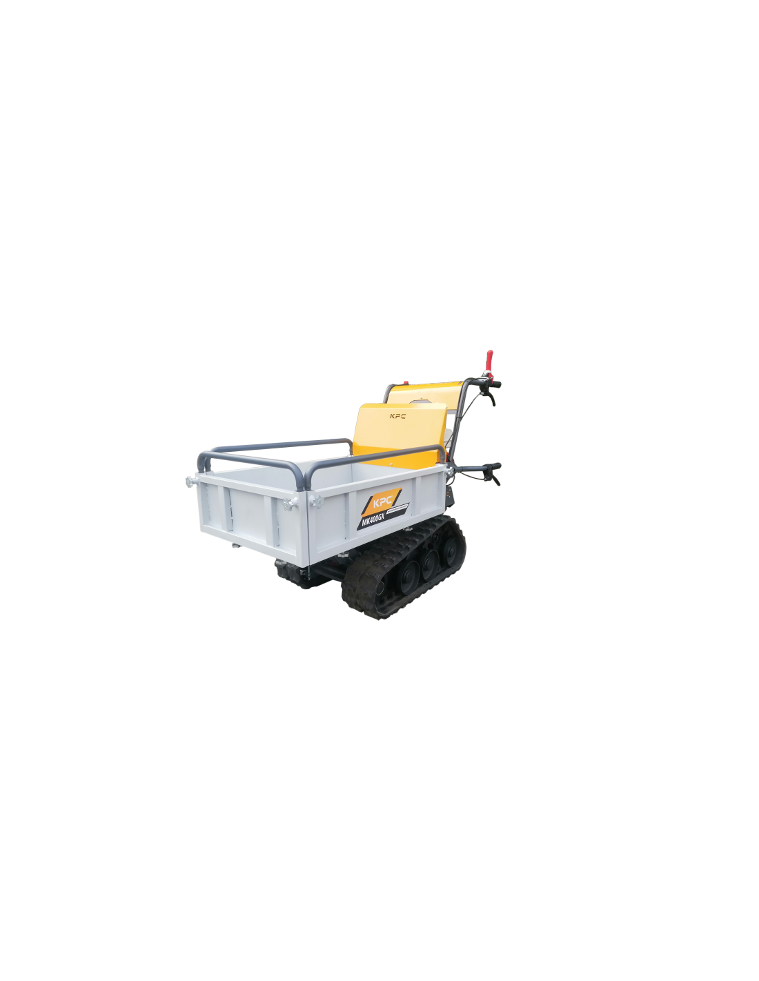 El KPC MK400 es un minitransporter profesional diseñado para el transporte de cargas pesadas en terrenos irregulares, obras, fincas agrícolas, jardinería y zonas privadas. Gracias a su sistema de orugas de alta tracción, estructura reforzada y un volquete de acero basculante manual, permite mover materiales con total estabilidad incluso sobre tierra, grava o pendientes pronunciadas.