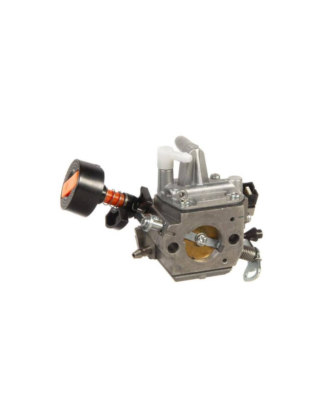 Carburador original Stihl que optimiza la mezcla aire-combustible para un arranque fácil y rendimiento constante.